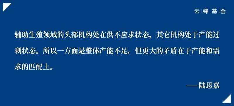 陆思嘉:虽说出生人口是在下降,但不孕不育以及对辅助生殖有需求的群体每年都在上升,而且辅助生殖中心就诊病患的平均年龄也在上升。年龄越大,医疗难度就越高,但现在做得质量好的机构又比较有限。
