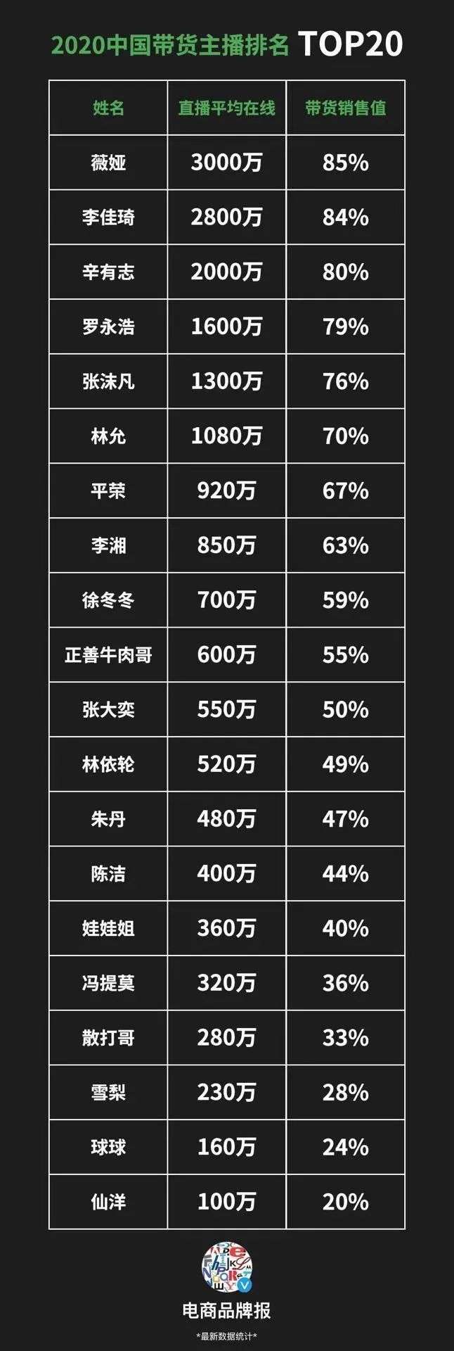 再比如他的直播场次减少了。曾经一年365天能直播389场,2020年直播频率却低了不少,虽然有个人身体休养、团队调整等多方面因素,李佳琦自己也表示放缓节奏是想呈现出更优质的直播内容,但从观看量和带货量来看,之前与他不相上下的薇娅已在榜单上领先他一头了。