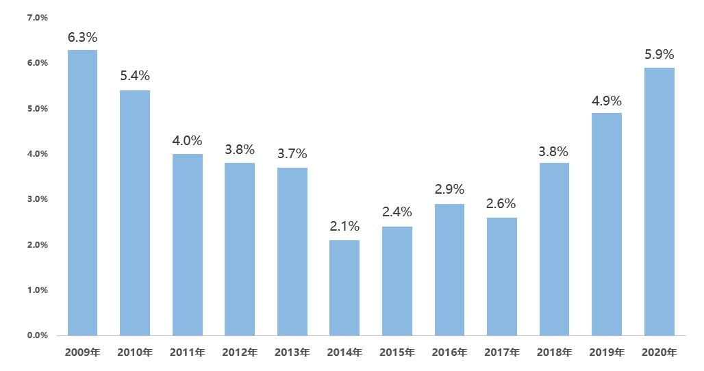 2009年以来我国互联网渗透率历年增长值