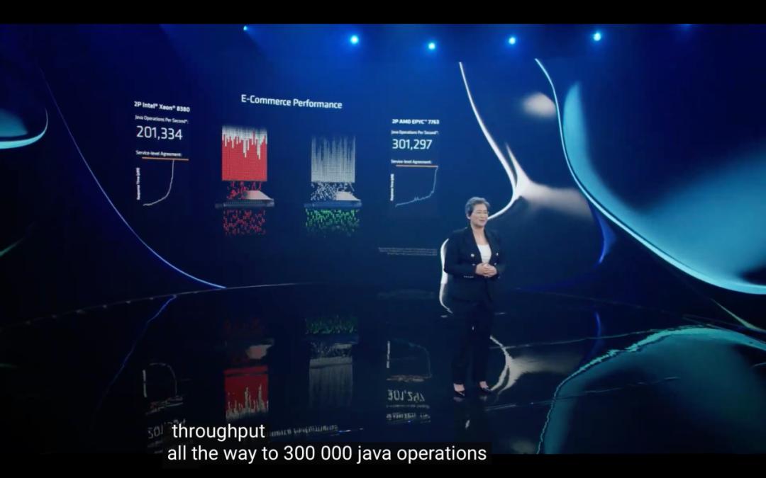 在今天的发布会上,AMD巧妙地避过了锋芒:苏妈首先强调了芯片计算能力在如今各个领域的重要性——随着疫情时代居家办公、线上学习以及网购的需求不断提升,数据中心和云计算正在各个行业中普及应用,对于计算芯片的算力要求当然是越快越好。