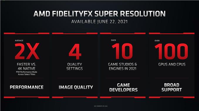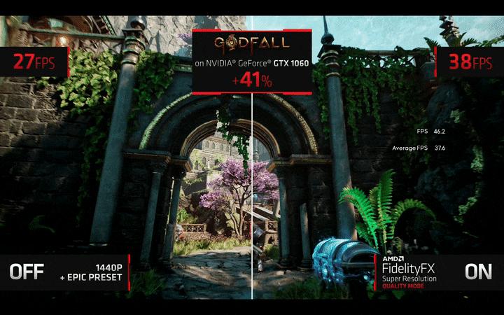 AMD还表示FSR(FidelityFX Super Resolution)技术除了支持自家RX6000、5000、500和Vega系显卡以外,还将支持英伟达10系开始的显卡。例如,在GTX1060平台上可以得到41%的提升。