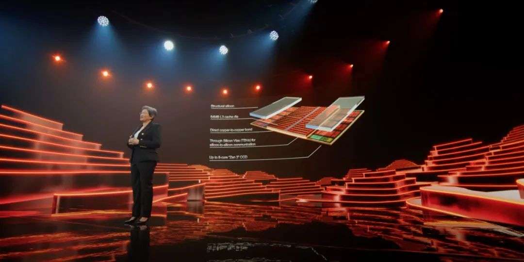 这项技术将首先应用于「3D垂直缓存」。在发布会上,苏妈展示了一颗基于Ryzen 5000系列处理器打造的实验芯片。
