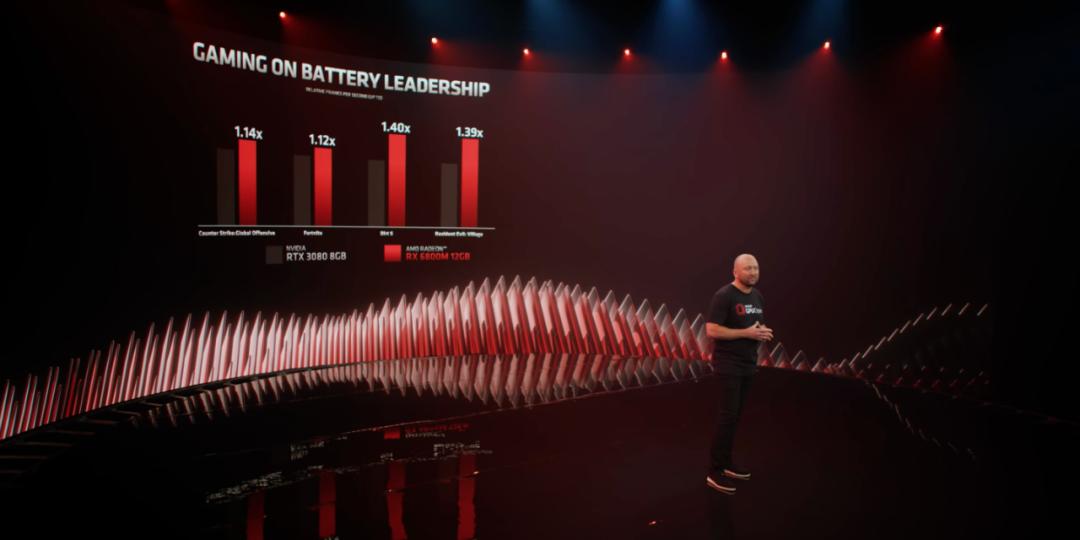 AMD还表示,自己能在不外接电源的情况下比3080有更好的性能。但是谁玩儿游戏不插电源啊。