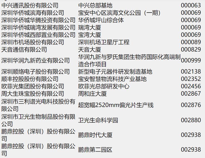 值得注意的是,在这38家上市公司当中有一个特点,就是热衷于参与企业总部建设,它们分别有:新国都(300130.SZ)的新国都股份研发总部基地、康泰生物(300601.SZ)的康泰生物产业研发总部基地、招商银行(600036.SH)的招商银行全球总部大厦、光峰科技(688007.SH)的光峰科技总部大厦、普门科技(688389.SH)的深圳普门科技股份有限公司总部及研发中心、万科A的万科总部大厦、深天马A(000050.SZ)的天马总部大厦、中兴通讯(000063.SZ)中兴总部基地和欧菲光的(002456.SZ)欧菲光总部研发中心。
