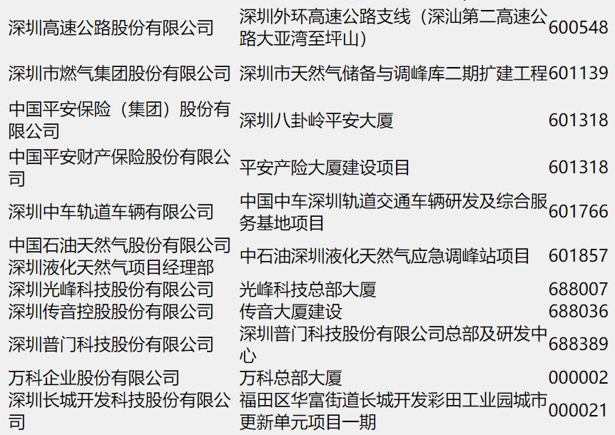 在这超2.8万亿投资当中,与投资者最为息息相关的,莫过于有多少家上市公司参与其中了。经过统计数据后发现,共有38家A股上市公司参与了其中52个项目。其中,中集集团(000039.SZ)和华侨城A(000069.SZ)各有4个项目上榜而最为引人关注;而深高速(600548.SH)和深圳能源(000027.SZ)则各有3个项目上榜;此外,农产品(000061.SZ)、鹏鼎控股(002938.SZ)、康泰生物(300601.SZ)和中国平安(601318.SH)都有2个项目上榜。反观在深圳本土市场以龙头股著称的比如万科A(000002.SZ)、顺丰控股(002352.SZ)等仅只有一个项目入围,让人稍感意外。