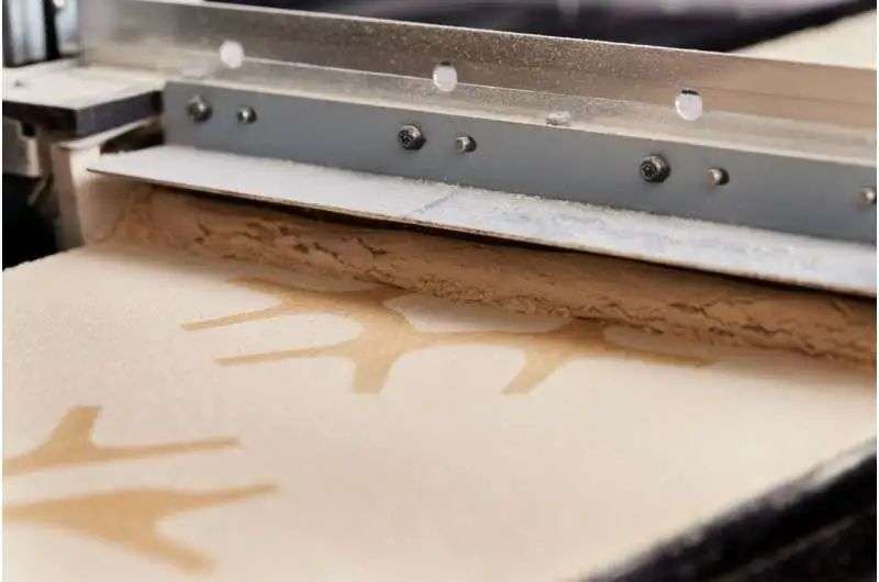 打印过程中,这些经过特殊处理的锯末会散布开来,人们将通过 CAD 软件及操作设计,让无毒且可生物降解的树脂粘合剂将原材料连接在一起。