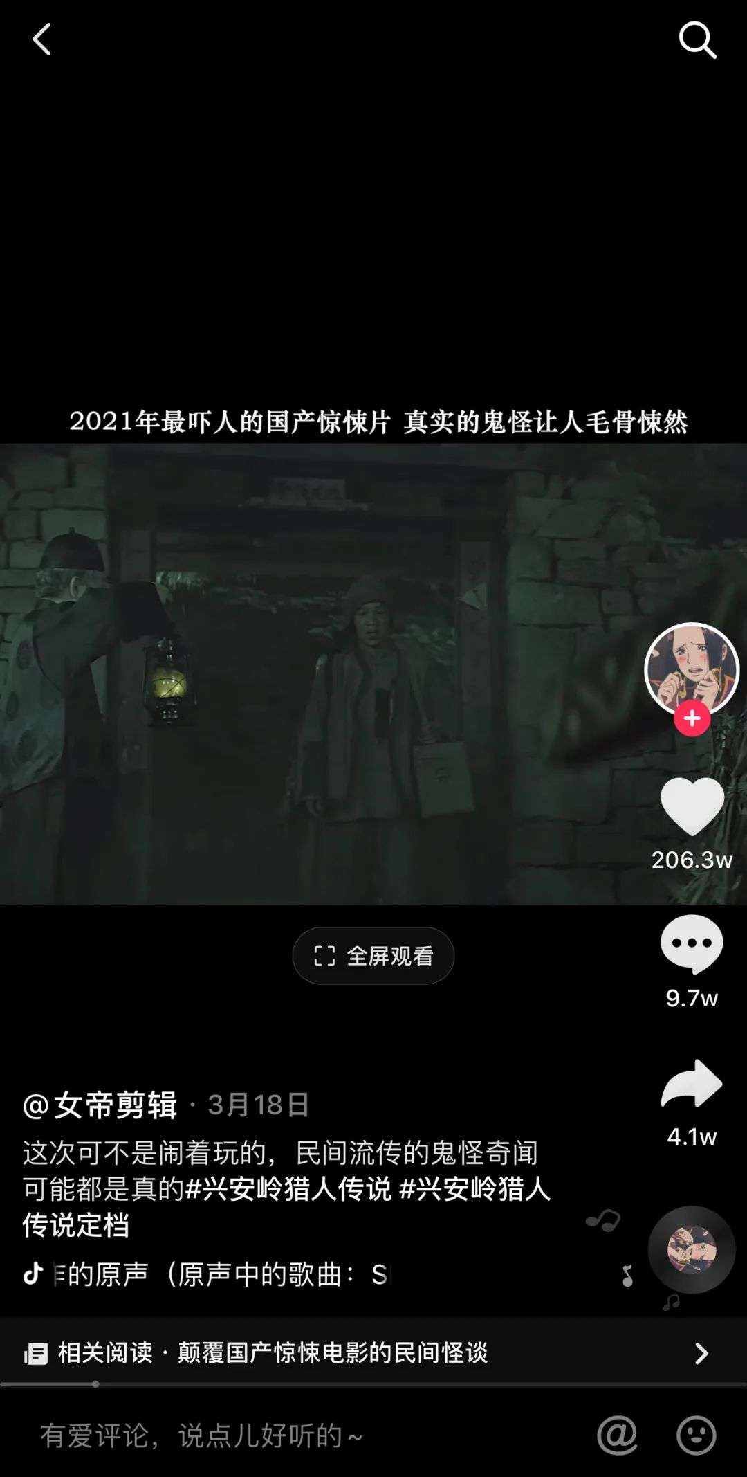好的二度创作可以为长视频添砖加瓦,不少用户正是通过短视频剪辑才去腾讯视频看了网大《兴安岭猎人传说》的,长短视频内容之间存在合作关系。优质的“自来水”创作,版权方乐见其成想必也不会加以为难。