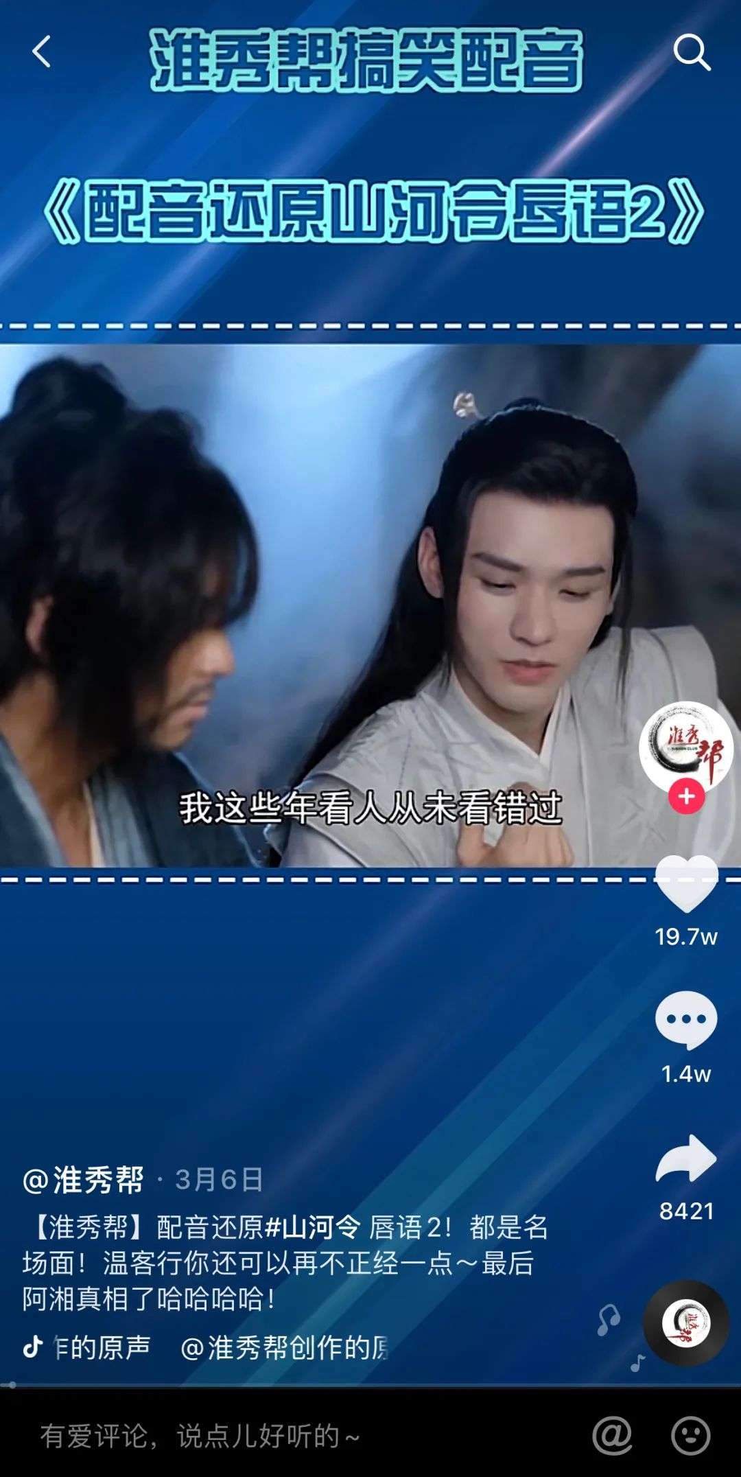 豆瓣小组的成员,发现优酷《山河令》因为原台词和配音不合,开始研发“唇语”推测拍摄时的台本内容。短视频营销号直接照搬豆瓣的研读成果,再二次传播给用户。虽然磕糖很快乐,但其原本的个人体验却在互联网共享中被冲淡了。