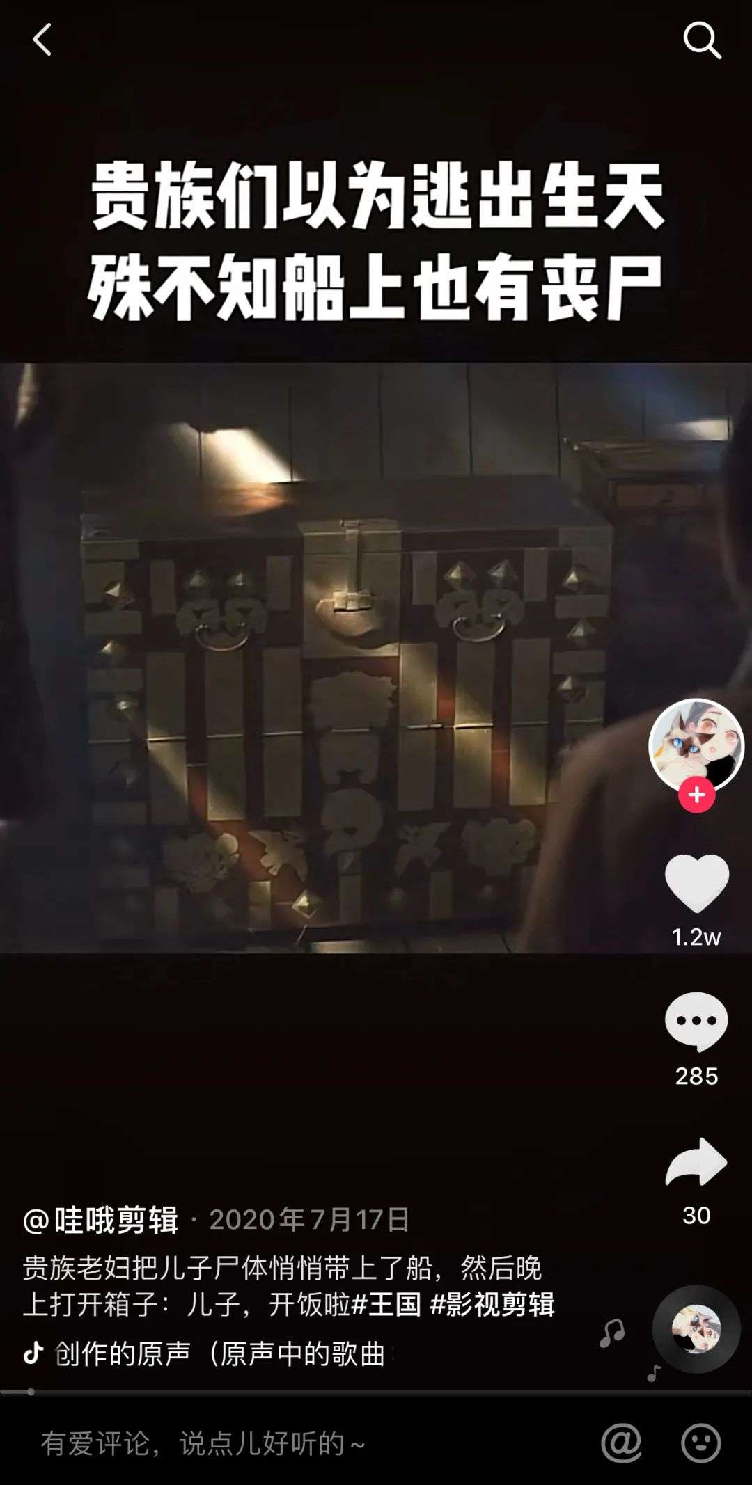 作为一种二次创作,短视频都是经过博主剪辑删选重塑过的,用户直接观看约等于“拾人牙慧”。Netflix的《王国》是一部丧尸题材的古装剧,主题包含了李式王朝时期的党派之争,古代君主与民生“水与舟”的辩证关系,以及颇具争议性的“杀君弑父”悲剧模型。