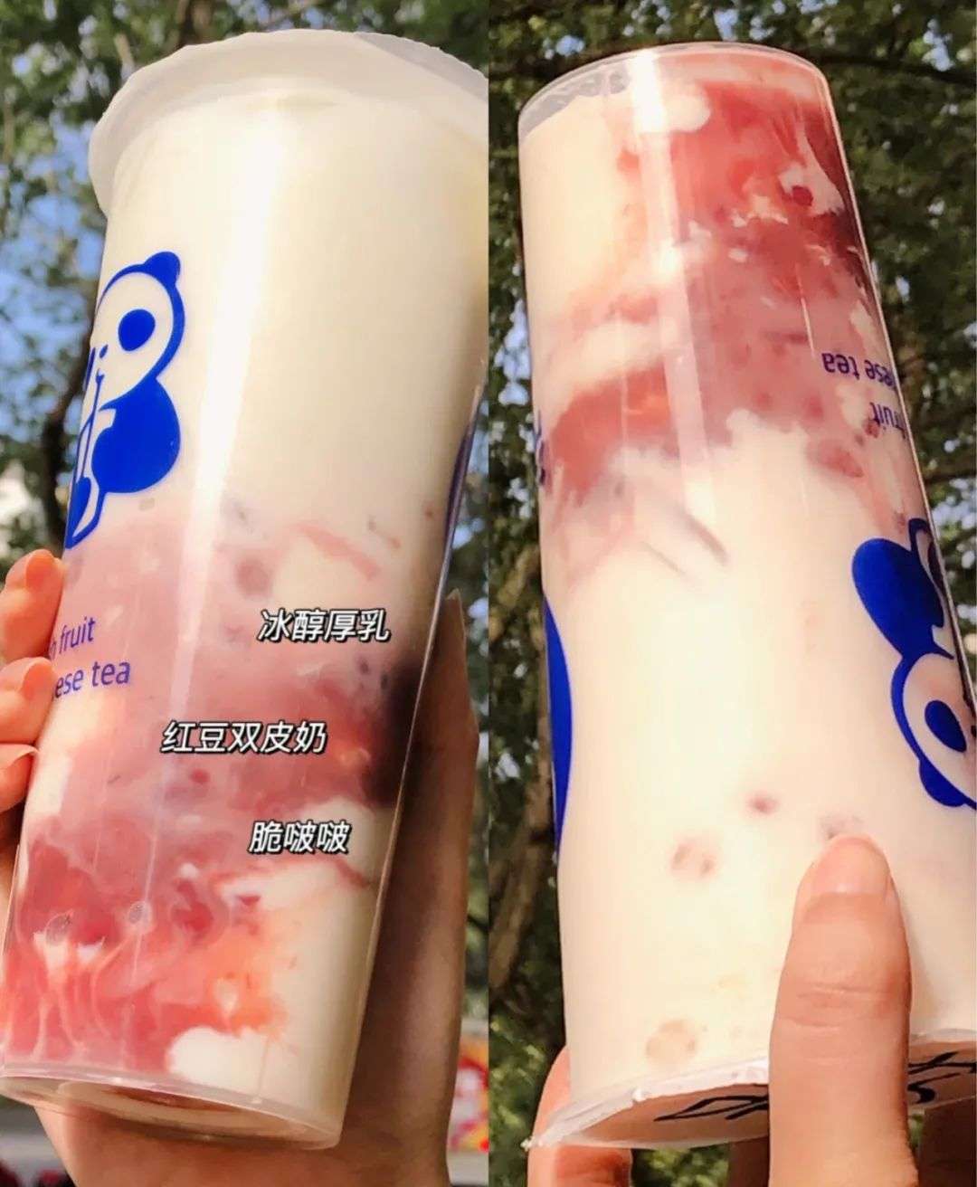 茶百道在5月初也上新了2款双皮奶产品,售价18元,除了使用传统的红豆和双皮奶之外,还加入了云南老树红茶茶汤。