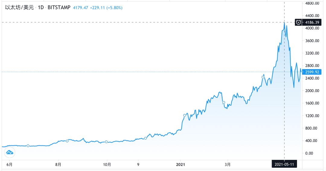 数据来源:Trading View2019年6月至2021年6月初以太坊的价格走势