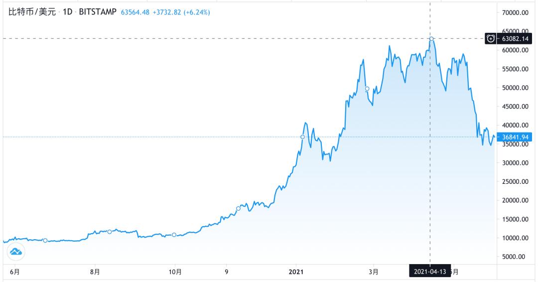 2019年6月至2021年6月初比特币的价格走势
