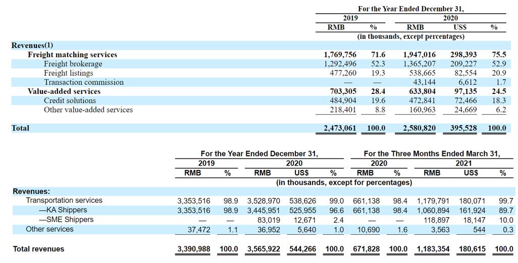 图:满帮(上)与福佑(下)营收构成对比(来源:招股书)