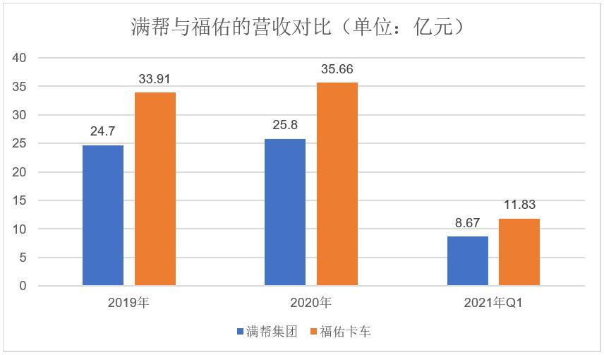 先来看下总体的营收业绩。福佑卡车最近两年的同期营收均高于满帮。2021年第一季度,福佑卡车的营收为11.83亿元,同比增长76.1%;满帮营收8.67亿元,同比增长97.7%。可见,二者均保持了较高水准的增长速度。
