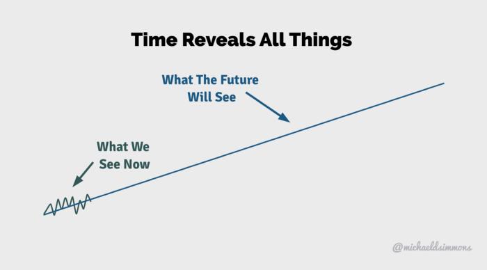 我们知道自己目前正生活在下一代的历史书中,我们只是还不知道这一章的名字。我们很难看透当下的迷雾,每天都有各种各样甚至相互矛盾的消息更新。而现在困扰我们的起起落落终将会被时间抚平。