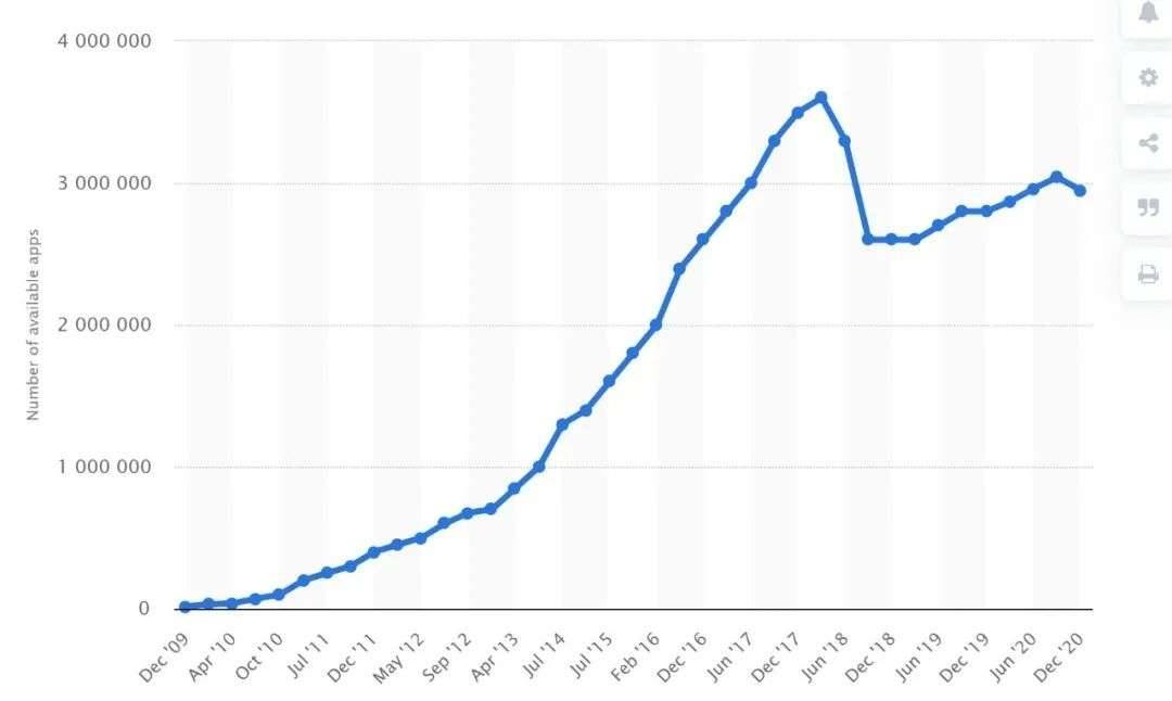 据谷歌2021年I/O开发者大会介绍,截至今年年初,全球83%以上的智能手机都装载了安卓系统,全球活跃Android设备数量已超30亿,2000万名全球开发者。再看苹果,接近15亿的活跃设备,2400万名全球开发者。在这些数字的背后,是安卓和iOS生态对于开发者的吸引力。
