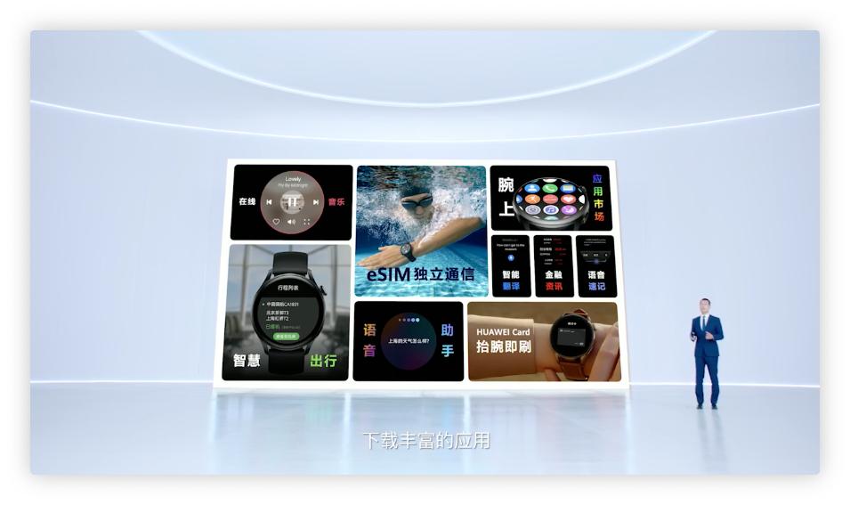首先是首款采用HarmonyOS 2.0的智能手表——华为Watch 3系列。作为HarmonyOS 2.0系统的首款智能手表,华为Watch 3基于华为「Watch is watch」理念,在软硬件协作的专属优化下,凭借超长的待机时间,让全功能智能手表也可以轻松实现超长续航,让智能手表回归手表的本质。