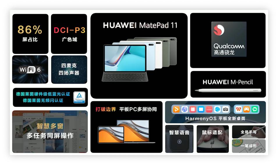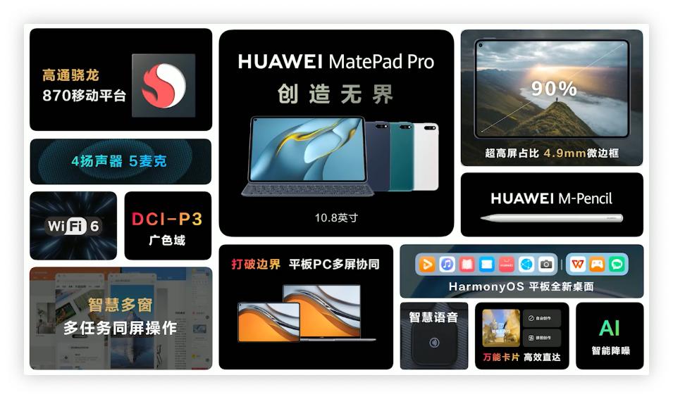 采用高通骁龙870芯片的MatePad Pro 10.8英寸提供WLAN 128GB/WLAN 256GB/WLAN 256GB键盘手写笔套装三个版本,售价分别为3799/4299/5299元, MatePad 11的价格则尚未公布。
