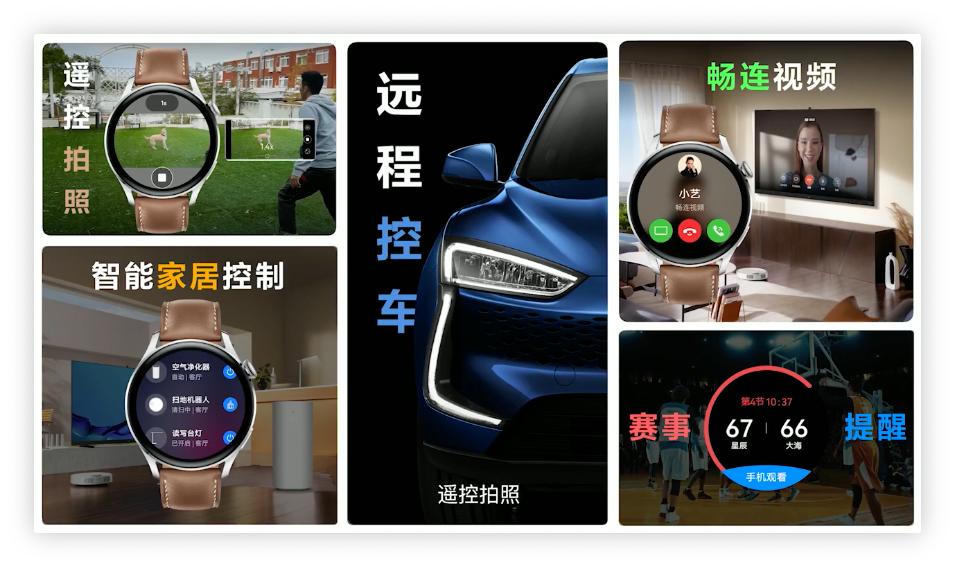 全场景互联方面,在HarmonyOS 2.0互联的基础上,华为Watch 3实现了手表与手机、大屏、车机等设备的互联。但在此之外,华为Watch 3系列还实现了与第三方IoT设备的互联,让华为Watch 3系列成为HarmonyOS 2.0下多设备通用的智能手表。