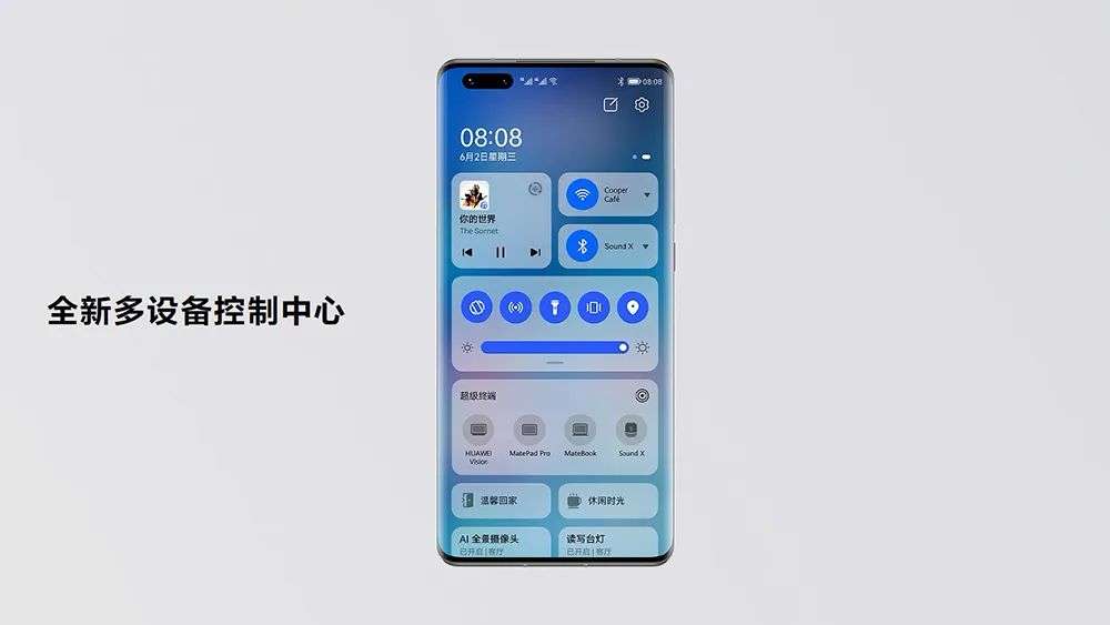鸿蒙OS中增加了全新的控制中心,可以实现从手机到全场景设备的控制。