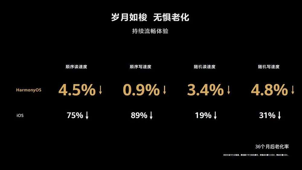 在性能方面,鸿蒙OS能够保持36个月持续流畅运行,保持跟新手机一样的运行速度,华为特别提到,在系统空间几乎占满的情况下,使用依然会非常流畅。