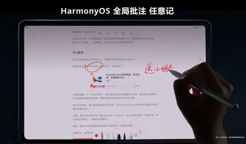 在操作方面,第二代M-Pencil手写笔也支持了全局手写功能,有输入文字的地方就可以手写输入,中英文混写、写错划掉等功能均有支持。未来M-Pencil还会增加“全局批注”功能,不论在浏览器还是淘宝中,用户可以随时批注并保存成图片或PDF文件。