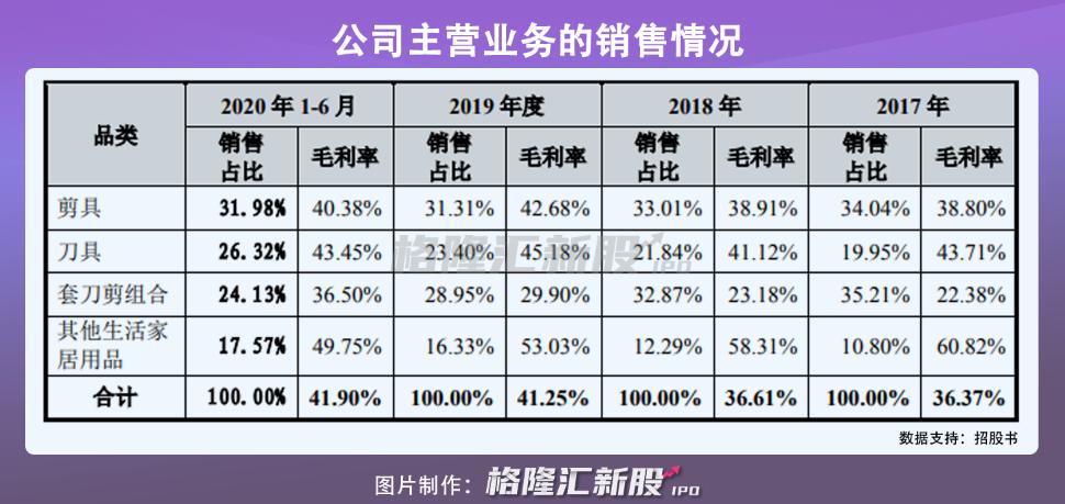 张小泉的业绩主要来源于剪具、刀具、套刀剪组合和其他生活家居用品,公司这一主营业务毛利率在报告期内分别为 36.37%、36.61%、41.25%和 41.90%。