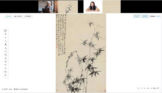 今天要画的是竹子,Helen 老师打开互动白板,分享 PPT 课件,结合课件的超高清画作和视频,讲解各种竹子的形态和画法,Amy 学习起来非常生动直观。「互动白板、高清多媒体课件」