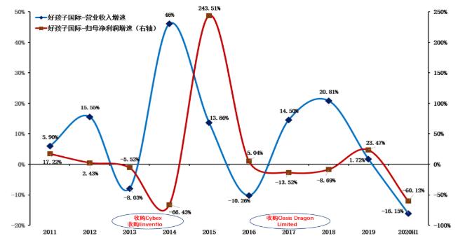 2014年、2015年,该公司营收分别增长46%,13%。2016年公司业绩又回落。2017年好孩子国际宣布收购自家品牌,买下好孩子中国旗下的自有品牌小龙哈彼(Oasis Dragon)。