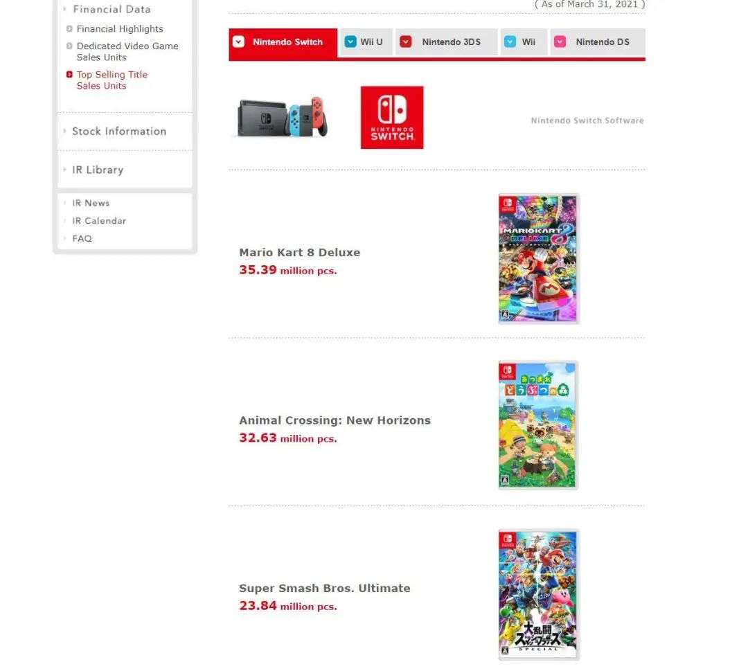 在 2019 年的财报中,任天堂就表示当年 Switch 的游戏销售中 85% 是第一方游戏,而在 Switch 销量榜中前几位也大多是任天堂自己推出的游戏,如《马里奥赛车 8 豪华版》《塞尔达传说:旷野之息》等。