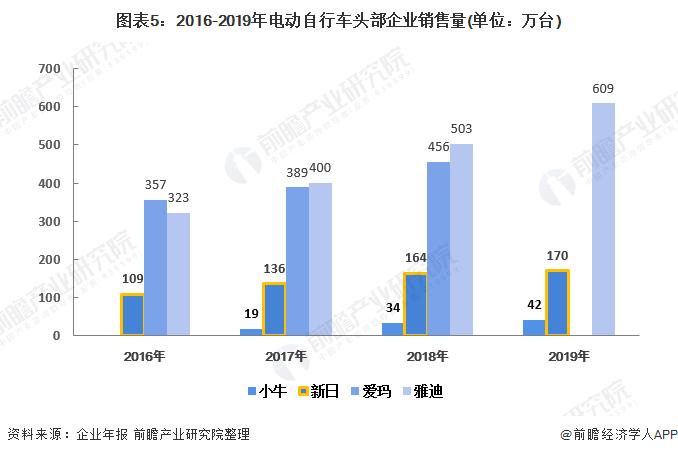 据未来智库资料显示,电动自行车行业玩家众多,集中度很低,截止2019年,国内有生产许可证的电动两轮车企业多达700余家,销售量前5名的品牌(雅迪、爱玛、台铃、新日和绿源)占有市场份额42%,剩下58%的市场份额被其他小品牌占有。[5]