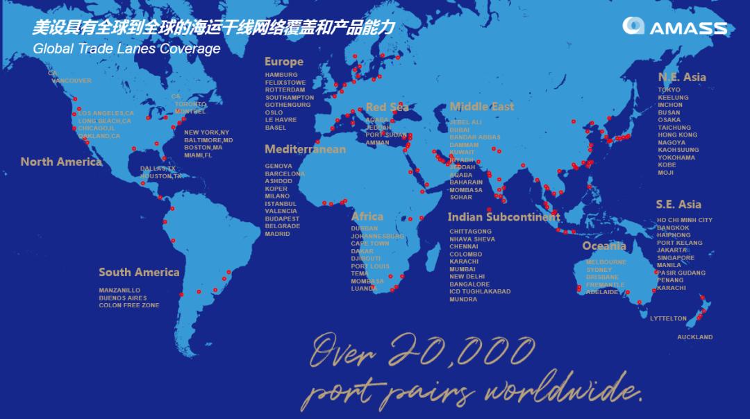 美设具有全球到全球的海运干线网络覆盖和产品能力