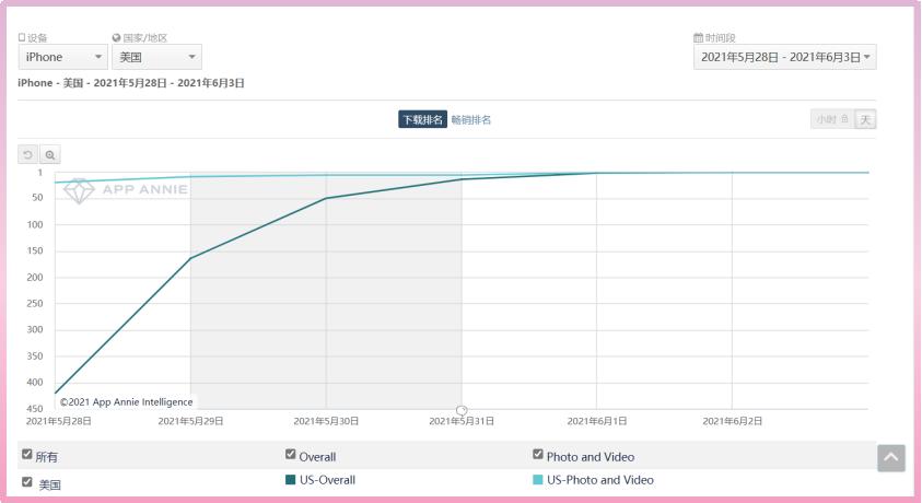 2021 年 6 月 2 日,修图 App 「VSCO」登顶美国 iOS 下载总榜。