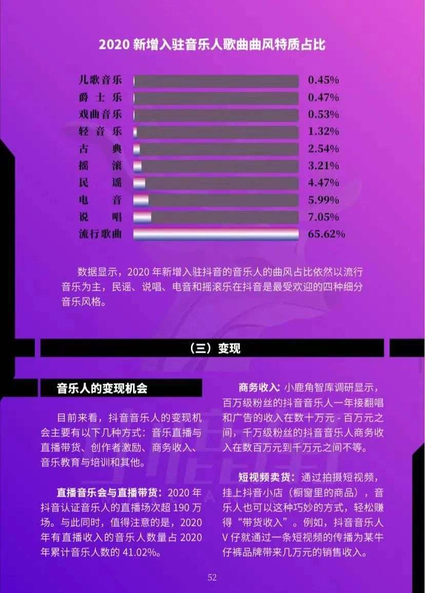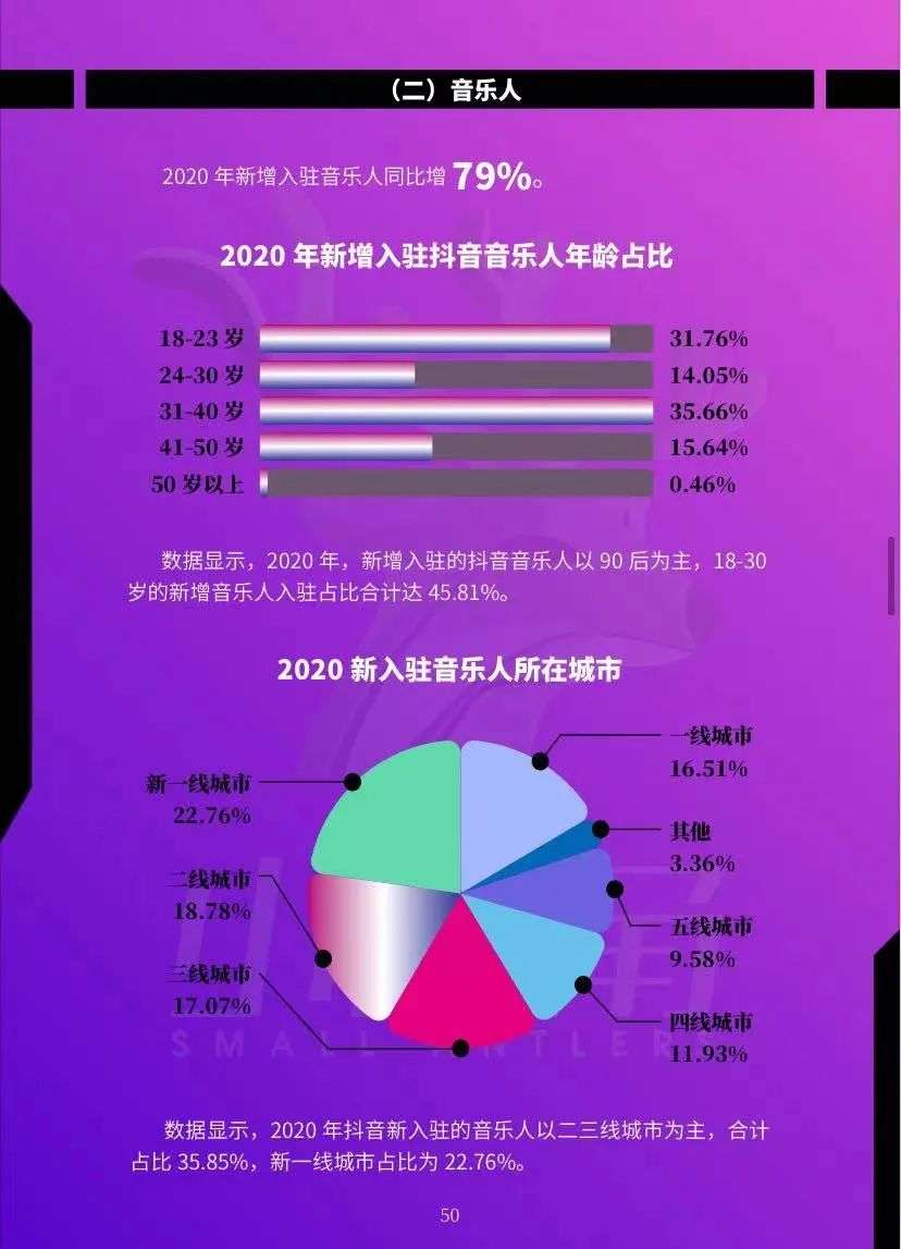 可以是直播:疫情之下,音乐直播得到了探索与发展。报告显示,2020年抖音认证音乐人的直播场次超190万场,2020年有直播收入的音乐人数量占2020年累计音乐人数的41.02%。