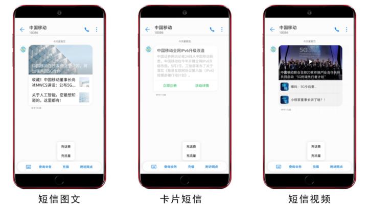 2019年4月,中国电信、中国移动、中国联通三大运营商联合发布《5G消息白皮书》,号召产业合作伙伴携手早日为用户全面推出5G消息服务,并结合了手机厂商定制短信的上行和交互能力。