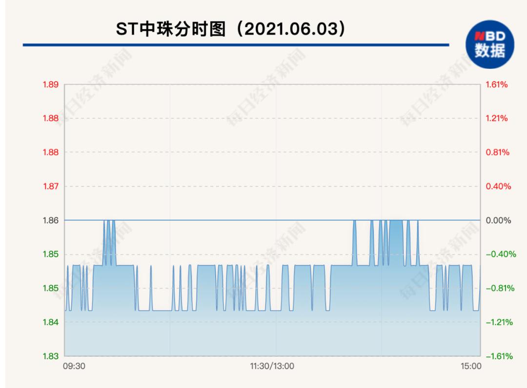 截至6月3日收盘,ST中珠股价报收于1.85元/股,众邦1号持股市值仅为7349.25万元。