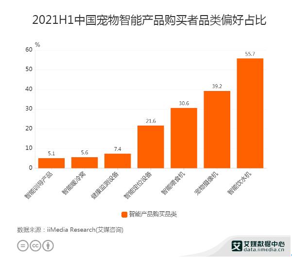 iiMedia Research(艾媒咨询)曾发现,2021H1中国55.7%宠物智能产品购买者偏好智能饮水机,30.6%消费者偏好的宠物智能产品为智能喂食机。