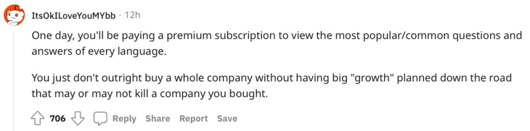 但网友们并不买账,普遍在担心Stack Overflow是不是也要开启付费VIP模式。而那一天的到来大概会是程序员们的「末日」。