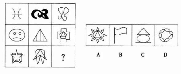 又比如下面这题,如果看整体图案,会让人很想把右下角的圆圈补全,那么答案一定得在ACD里吧?
