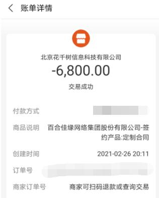 举一个典型的案例,下图这位女士被号称可以修复夫妻情感、二对一陪伴手把手教怎么调整夫妻关系的百合情感的广告吸引,支付了6800元报名费。