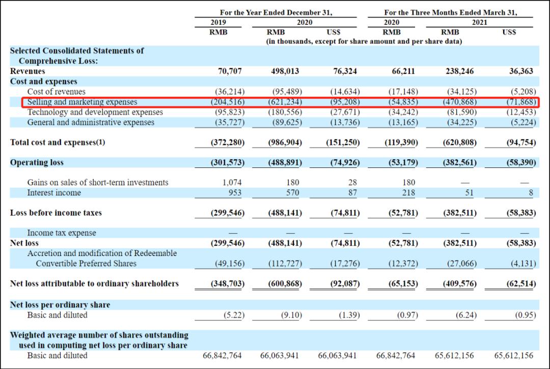 从数据上看Soul付费用户的比例和付费额的增速已经放缓,但它用户规模还不足以支撑平台的网络效应。所以投入不菲的营销费用——2019年2个亿,2020年6.2亿(同比增加203%),2021年Q1为4.7亿(同比增加772%)——还将会持续。