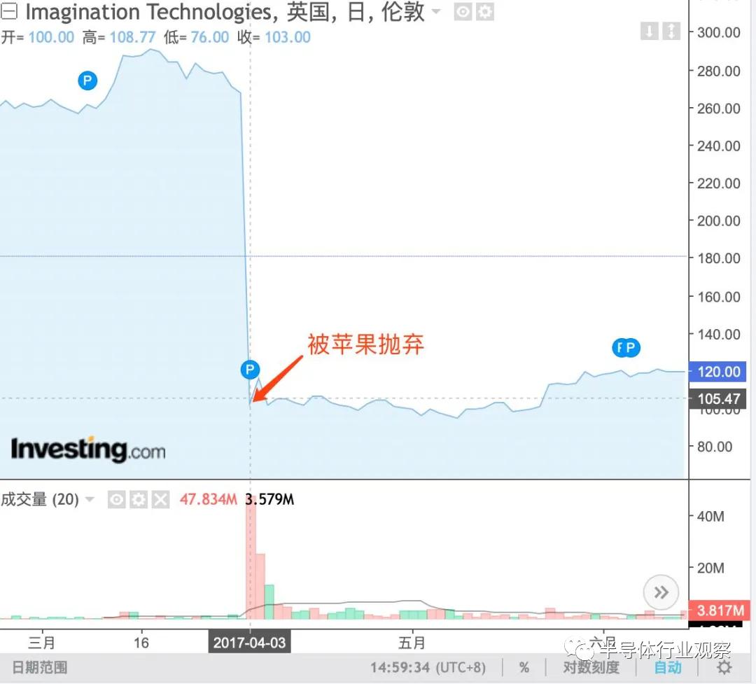 2017年4月,苹果宣布将在15 - 24个月内停止使用英国Imagination的GPU设计,转而采用自己设计的产品。消息一出,Imagination 股价瞬间暴跌了近 69%,当天跌幅更是高达 75%。此后几年,Imagination几经波折,出售其嵌入式处理器业务MIPS,以及移动计算芯片业务Ensigma,后又悲惨“卖身”给Canyon Bridge。不过这几年其专注于GPU业务,PowerVR技术也表现不俗,Imagination依靠自己卓越的产品重新引起了苹果的关注,最后苹果也因此与其再续前缘。