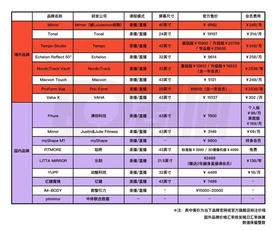 而放眼海外市场,我们所熟知的几大智能健身镜品牌,实际上也是根据目标用户人群,确定自身产品的市场定位,走差异化路线。