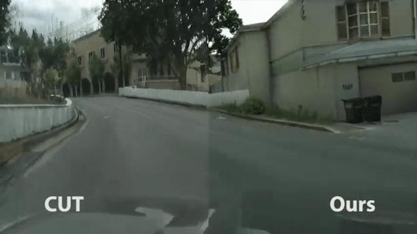 此外,相比于其他模型,英特尔的新模型在视觉效果上具有显著优势,例如 CUT 模型生成的画面中存在一些伪影,而英特尔的新模型以较小的图块进行采样,减少了源数据集和目标数据集之间的不匹配,很好地避免了产生伪影的问题: