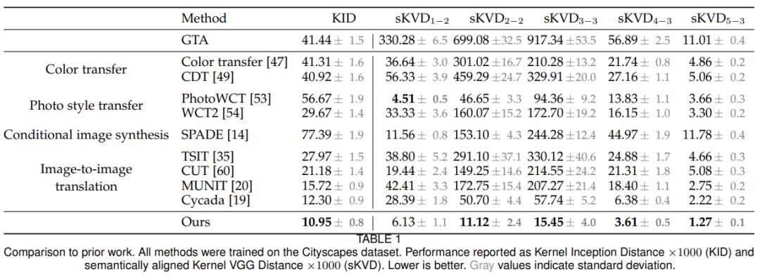 研究者将该方法与其他多个图像转换模型对比了生成效果,结果如下表所示: