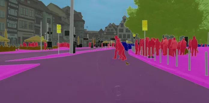 Cityscapes 数据集中对于人物和街景物体的精细分割。