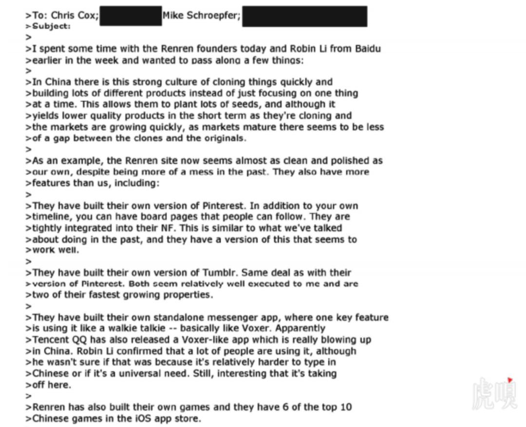 2.扎克伯格邮件曝光:与李彦宏、人人创始人会面后鼓励Facebook抄袭。