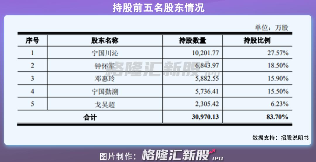 从股权结构来看,紫燕食品属于典型的家族控股,实际控制人为钟怀军、邓惠玲、钟勤川、钟勤沁、戈吴超,钟怀军和邓惠玲系夫妻,其余分别为子女及女婿,上述五人合计持有88.58%的表决权。