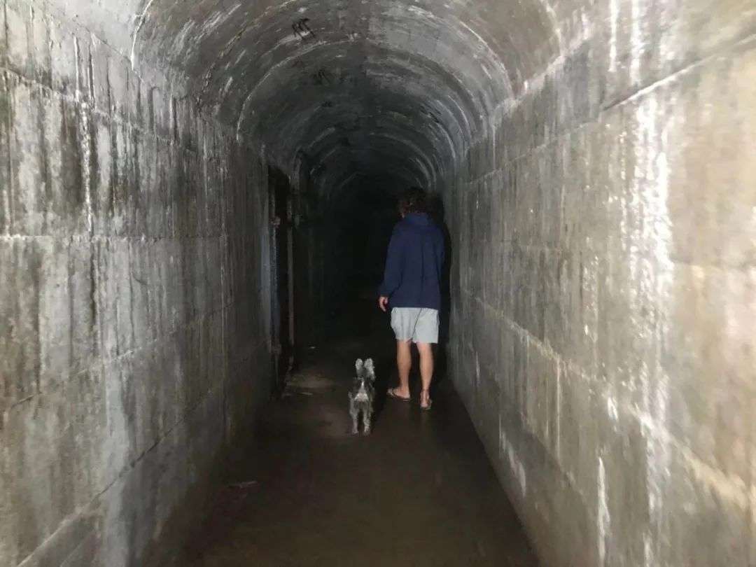 冲浪之余,俱乐部的创始人还带我们去山上探洞。那是一个废弃的军事基地,非常隐秘地藏在海湾之中。从外露的建筑看上去,这个山洞平平无奇、很普通,但当我们走进去,才发现它是一整个山挖成的基地,有不同的出口,墙上还有上世纪60年代或更早的标语。
