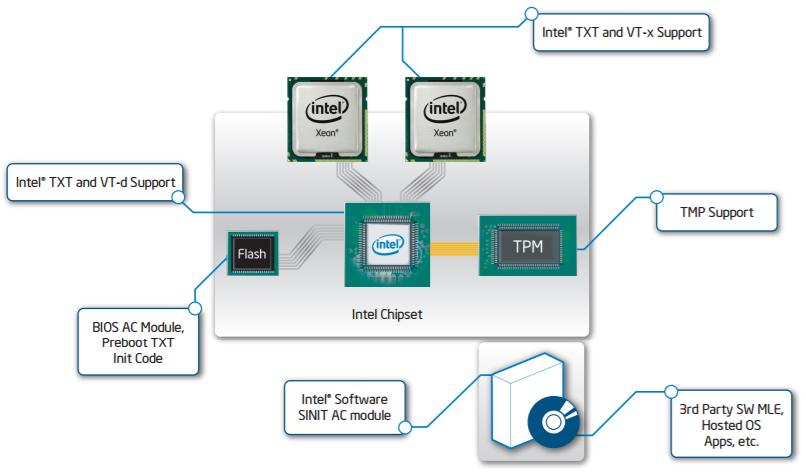Intel TXT(Trusted Execution Technology)的主要目标是通过使用特定的Intel CPU、专用硬件以及相关固件,建立一个从开机就可信的环境,从而为系统上运行的用户程序提供更好的安全保护。